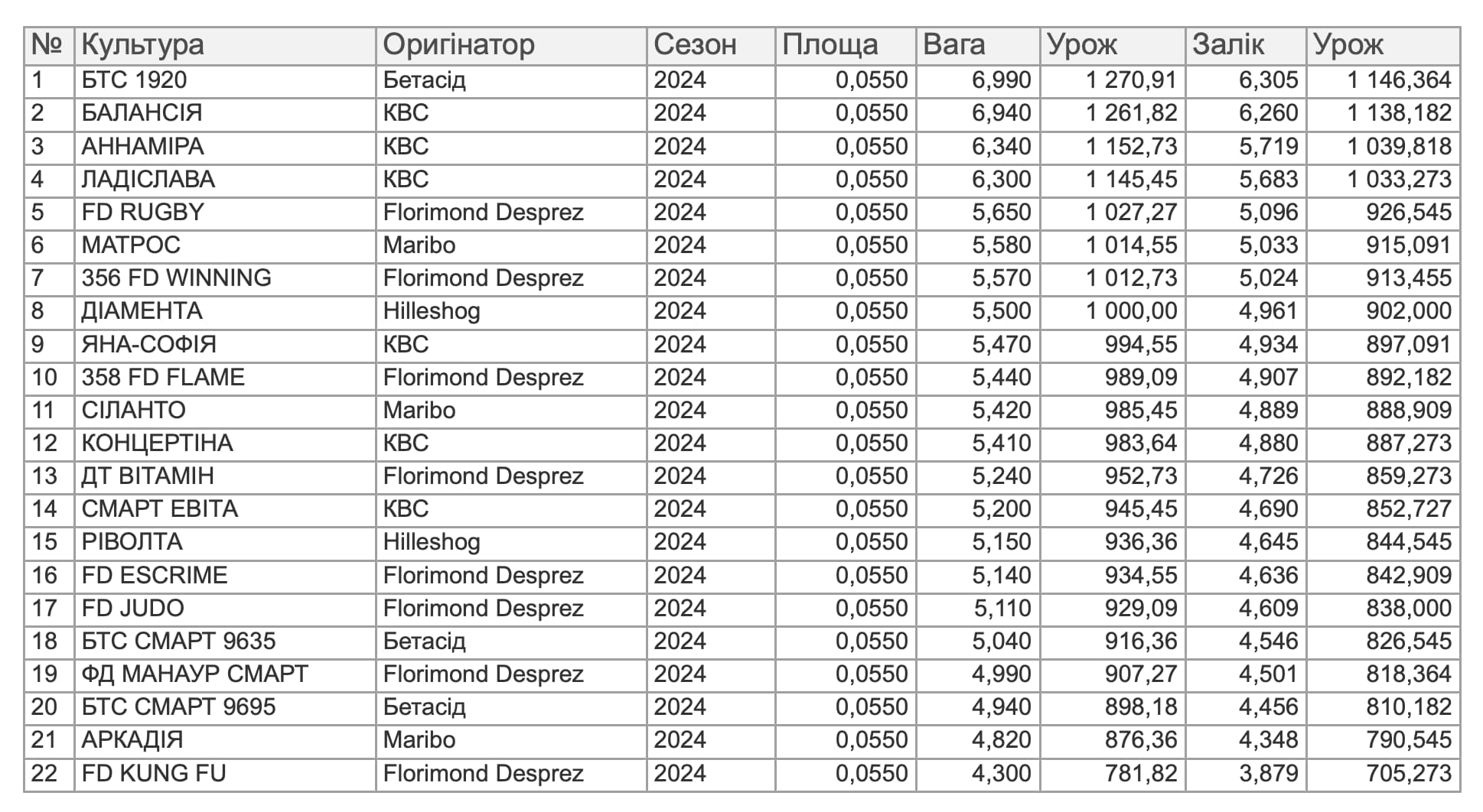 Результати урожайності кукурудзи 2024
